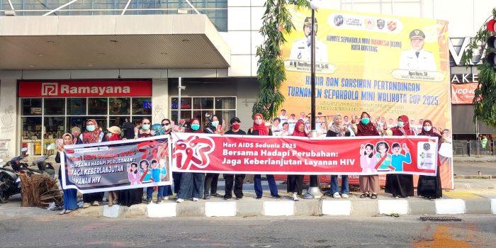 KALTIMOKE, BONTANG – Dinas Kesehatan (Dinkes) Kota Bontang menggelar kampanye Hari HIV/AIDS Sedunia di Simpang Tiga Ramayana, Jalan MH Thamrin , Senin