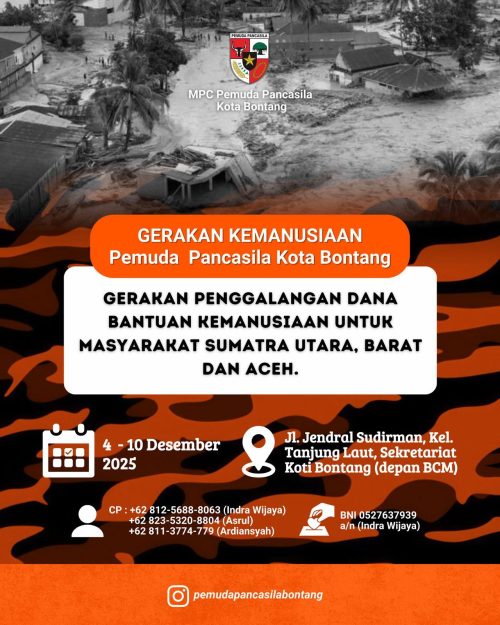MPC Pemuda Pancasila Kota Bontang mengajak donasi sukarela untuk masyarakat umum di mulai dari Kamis 4 hingga Rabu 10 Desember 2025.