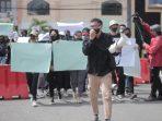 BONTANG, KALTIMOKE – Mulut dibungkam menggunakan pita perekat. Peserta aksi kompak mengenakan baju serba hitam. Tanda pengenal (Id card) pers dilucuti dari