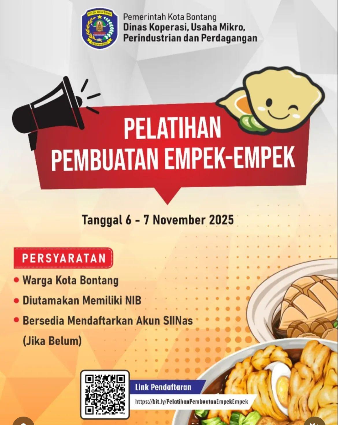 Kali ini, pelatihan yang digelar berfokus pada pembuatan empek-empek, yang akan dilaksanakan pada 6–7 November 2025 mendatang.