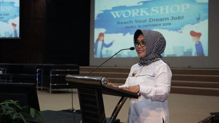 BONTANG, KALTIMOKE – Wali Kota Bontang, Neni Moerniaeni, hadiri WorkShop Reach Your Dream Job yang digelar Badak LNG, Rabu 16 Oktober 2019 di Gedung Multi Purpose Building (MPB) Badak LNG.