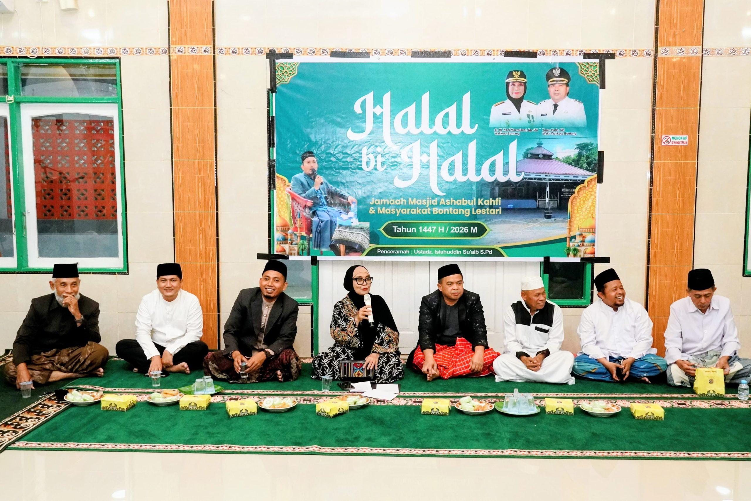 KALTIMOKE, BONTANG – Wali Kota Neni Moerniaeni didampingi Wakil Wali Kota Agus Haris menghadiri kegiatan halal bihalal di Masjid Ash-Habul Kahfi, Kelurahan Bontang Lestari, Selasa malam (14/4/2026).