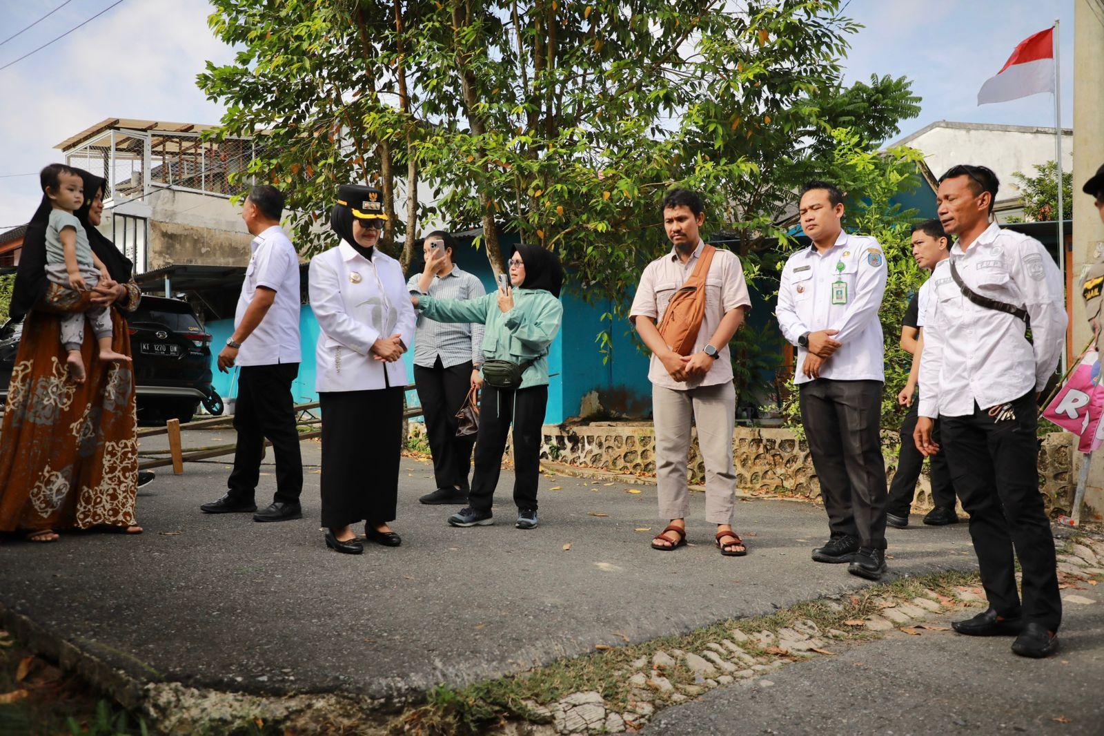 Neni Tinjau Lokasi Jalan Lingkungan di Perumahan Bukit Sekatup Damai Yang Longsor