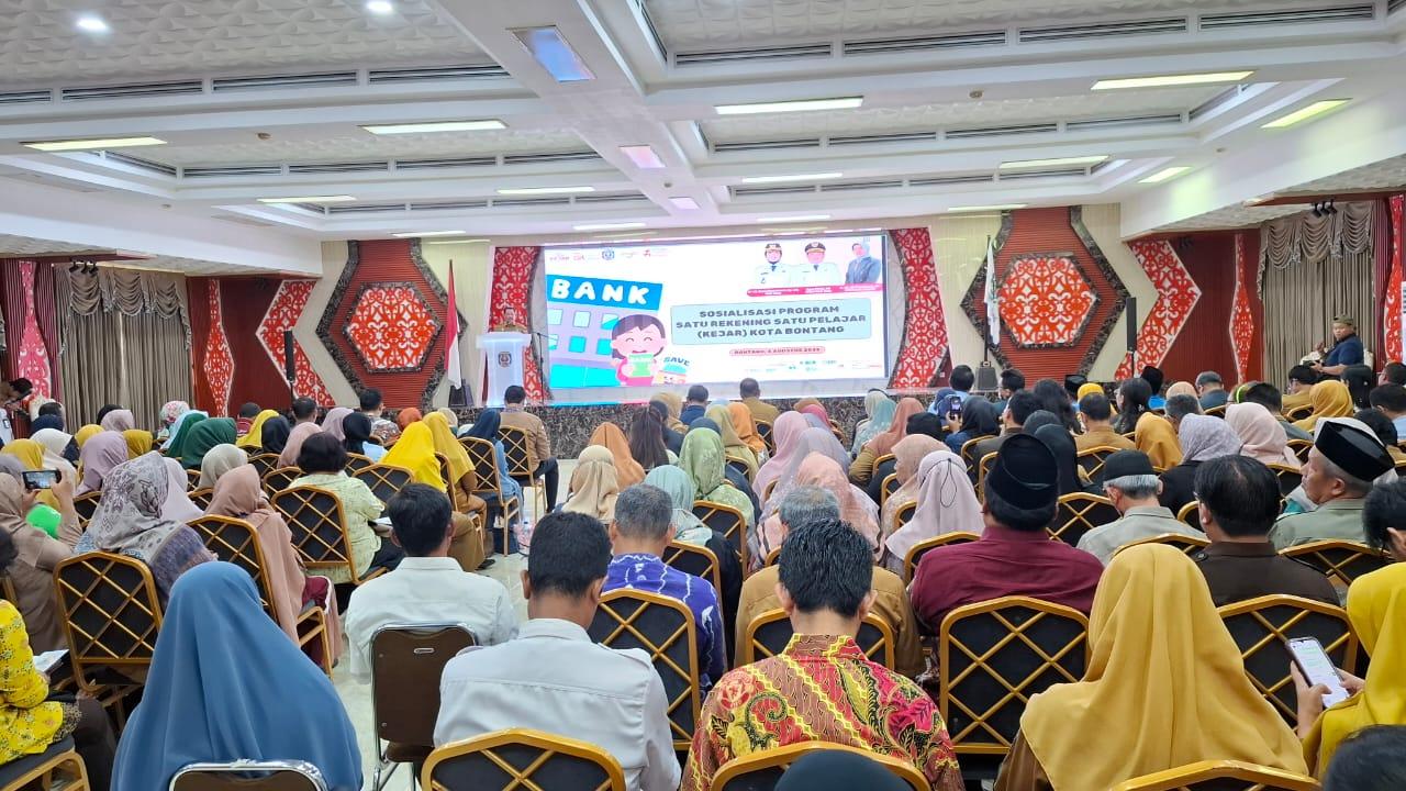 KALTIMOKE, BONTANG – Pemerintah Kota Bontang meluncurkan sosialisasi Program Kejar (Satu Rekening Satu Pelajar) di Kota Bontang tahun 2025 di Auditorium 3D Senin, (4/8/2025).