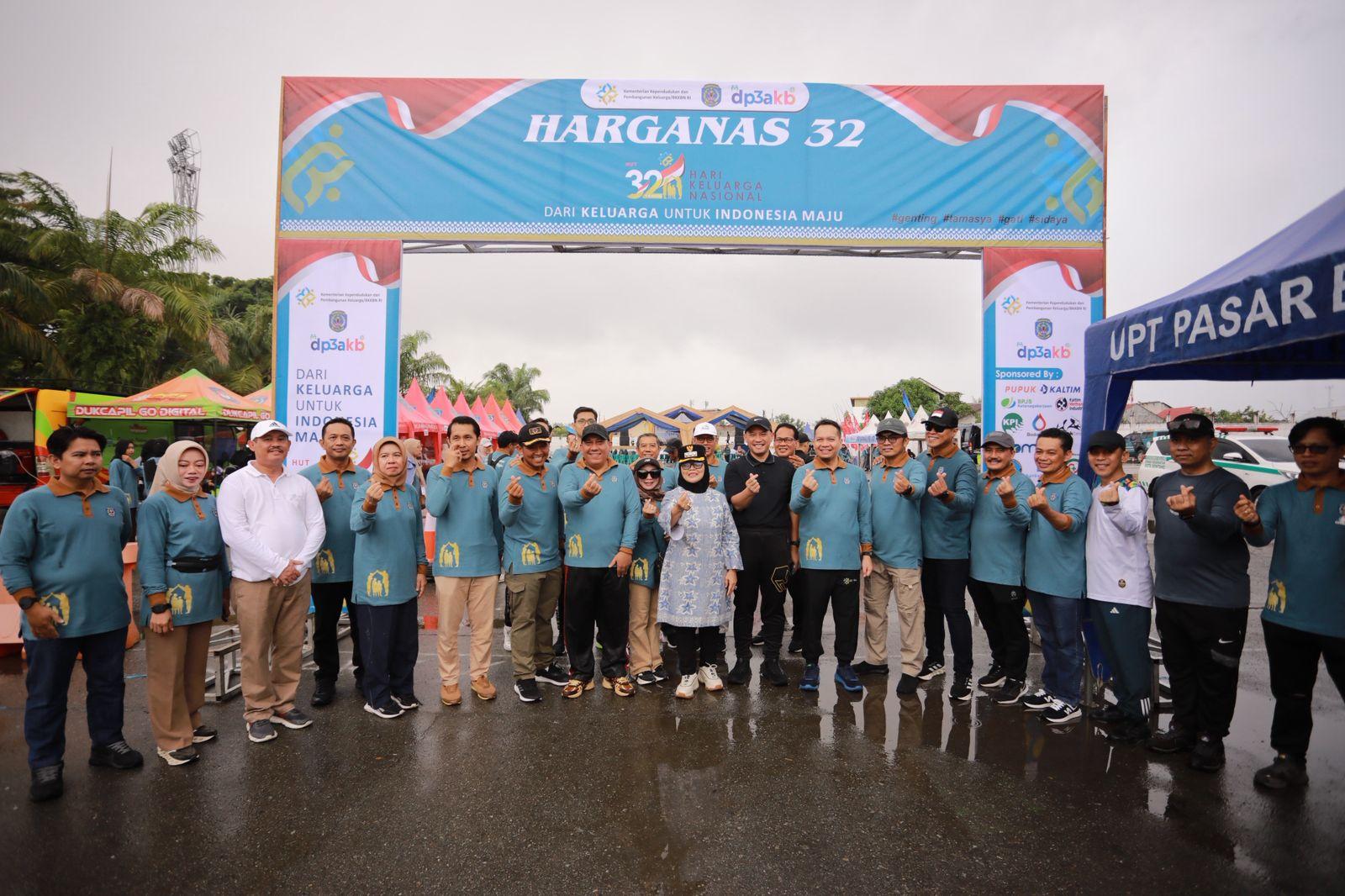 KALTIMOKE, BONTANG – Wali Kota Bontang, Neni Moerniaeni, menghadiri peringatan Hari Keluarga Nasional (Harganas) ke-32 yang digelar di Lapangan Lang-Lang, Sabtu pagi. Acara ini diadakan oleh Dinas Pemberdayaan Perempuan, Perlindungan Anak dan Keluarga Berencana (DP3AKB), dan diikuti oleh ratusan warga yang ikut jalan sehat.