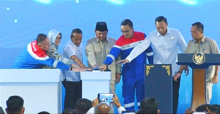 “Saya menyambut dengan bahagia dan merasa sangat bangga atas apa yang kita hasilkan hari ini melalui peresmian ini,” ujar Presiden Prabowo.