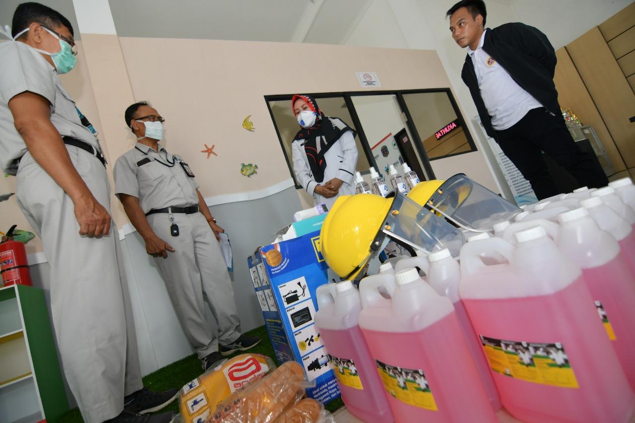 Bantuan 100 liter cairan disinfektan, 2 unit alat semprot, 15 botol hand sanitizer ukuran 250 ml beserta kemasan isi ulang sebanyak 5 liter, 1 unit infrared thermometer, serta 2 paket Alat Pelindung Diri (APD) berupa helm dan sepatu safety disalurkan ke Kelurahan Guntung, yang diterima oleh Lurah Guntung Ida Idris pada Rabu (1/4).