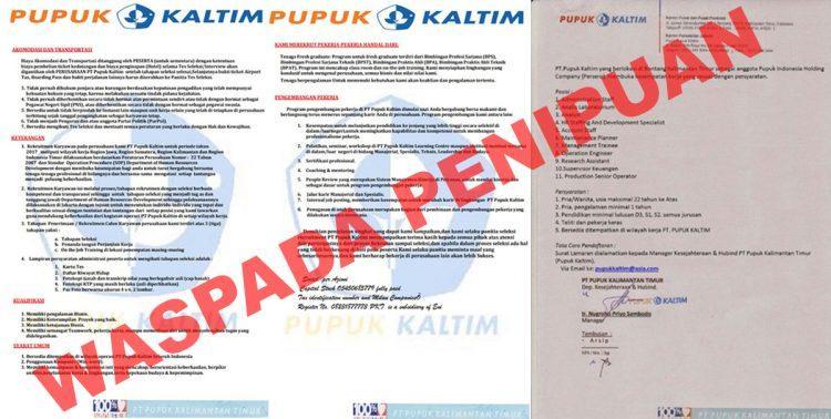“Informasi ini tidak benar, Pupuk Kaltim saat ini tidak sedang melakukan rekrutmen karyawan,” tegas Soesilo.