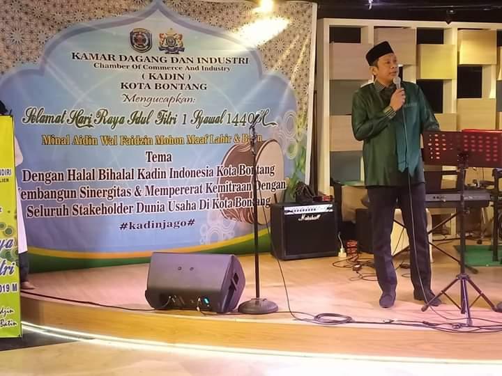 BONTANG, KALTIMOKE — Wakil Wali Kota Bontang, Basri Rase hadiri halal bihalal yang digelar Kamar Dagang Industri (Kadin) Kota Bontang di Ball Room Hotel Equator, Minggu 23 Juni 2019.
