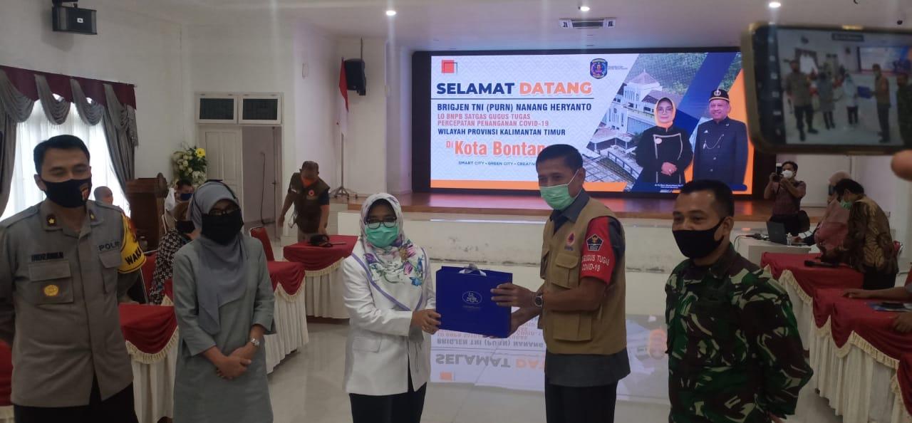 BONTANG, KALTIMOKE — Pemerintah Kota (Pemkot) Bontang, menyambut kedatangan Liaison Officer (LO) Badan Nasional Penanggulangan Bencana (BNPB) Satgas Gugus Tugas Percepatan Penanganan Covid-19 Wilayah Provinsi Kalimantan Timur (Kaltim) di Pendopo Wali Kota Bontang, Kamis (21/5) pagi.
