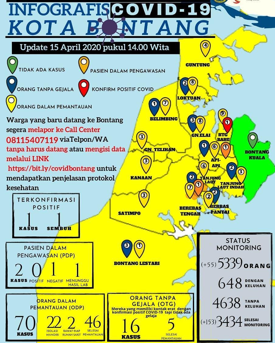 Saat ini terdapat 16 orang Bontang yang masih menunggu hasil laboratorium dari BBLK, untuk itu masyarakat harus tetap melakukan social/physical distancing (menjaga jarak), menghindari kerumunan, belajar, bekerja dan beribadah dari rumah serta disiplin menerapkan polah hidup bersih dan sehat, serta wajib menggunakan masker saat keluar rumah. (**)