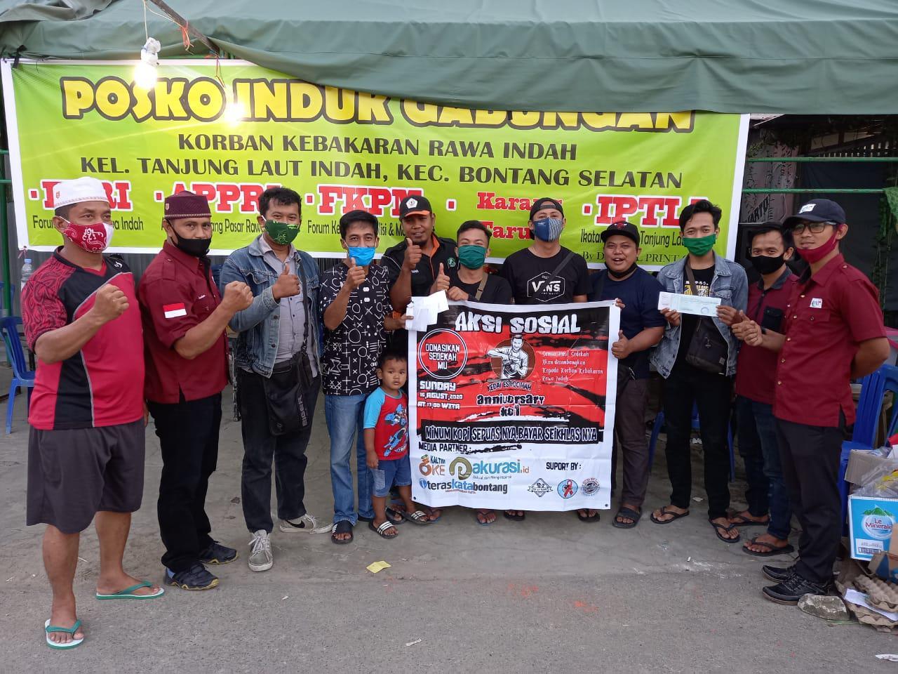 Kegiatan yang dilakukan, pada Minggu (16/8/2020) pukul 17.00 sampai dengan selesai itu bertepatan dengan Peringatan ulang tahun pertama Kedai Es Tiqomah, yang dirayakan dalam bentuk aksi kepedulian terhadap korban bencana kebakaran Tanjung Laut Indah.
