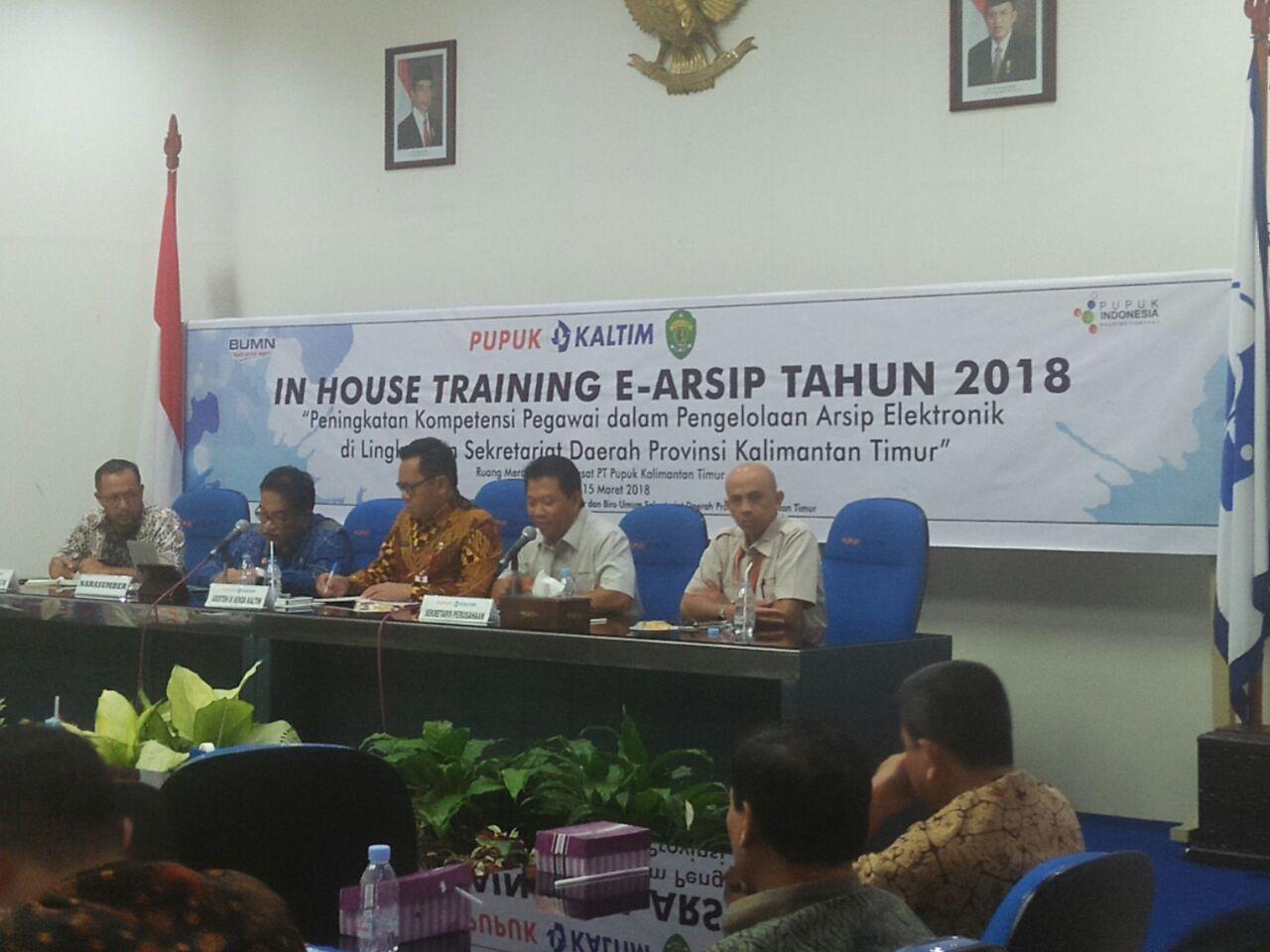 Pelatihan bertema, “Peningkatan Kompetensi Pegawai dalam Pengelolaan Arsip Elektronik di Lingkungan Sekretariat Daerah Provinsi Kalimantan Timur.” Hadir sebagai narasumber dari Pupuk Kaltim yakni Superintendent Kearsipan, Loso Suyatno, Staf Kearsifan, Ulfa Ilma dan staf administrasi, Soraya. Hadir juga Asisten III Sekretaris Daerah Provinsi Kaltim, Bere Ali.