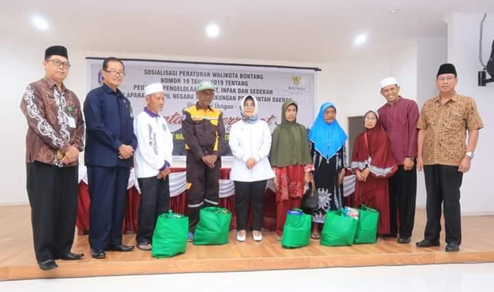 BONTANG, KALTIMOKE — Pemerintah Kota Bontang bersama Badan Amil Zakat Nasional (Baznas) gelar sosialisasi Peraturan Wali Kota (Perwali) Bontang Nomor 19 Tahun 2019 Tentang Pedoman Pengelolaan Zakat, Infak dan Sedekah bagi Aparatur Sipil Negara (ASN) di Pendopo Rumah Jabatan Wali Kota, Kamis 16 Mei 2019. Kegiatan ini juga dirangkai dengan pemeriksaan kesehatan dan pembagian sembako untuk lansia.