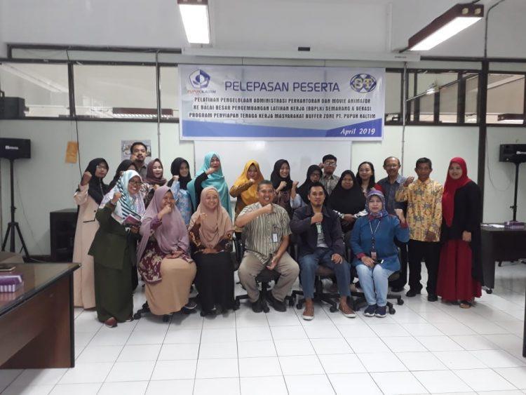 BONTANG, KALTIMOKE — Menindaklanjuti program penyiapan tenaga kerja andal dan profesional masyarakat bufferzone, Pupuk Kaltim kirim 10 peserta pelatihan Administrasi Perkantoran dan Digital Animasi dari Kelurahan Guntung dan Loktuan, untuk mengikuti pelatihan lanjutan sekaligus sertifikasi ke Balai Besar Pengembangan Latihan Kerja (BBPLK) Bekasi dan Semarang. Para peserta dilepas Manajemen Pupuk Kaltim melalui Superintendent Bina Lingkungan dan Kemitraan Departemen CSR Udiyanto, disaksikan orangtua bersama perwakilan Pemerintah Kota Bontang melalui Kelurahan Guntung dan Loktuan di Ruang B1 Gedung Diklat Kantor Pusat Pupuk Kaltim pada 5 April 2019.