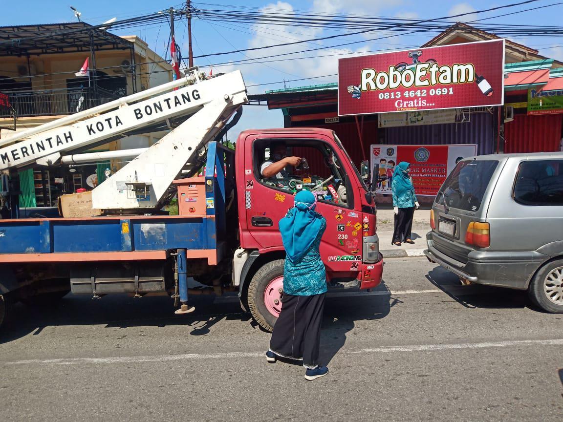 Terapkan Gaya Hidup Baru, PKK Kelurahan Belimbing Bagikan Masker ke Pengguna Jalan