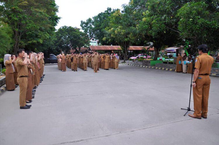 “Apel gabungan ini dilaksanakan setiap bulan dan petugas apel bergantian setiap pelaksanaannya. Tujuannya, untuk mempererat silaturahmi dan memberikan motivasi ASN dan Non PNS untuk lebih disiplin dalam melaksanakan tugas sehari-hari,’’ungkap Sarifuddin.