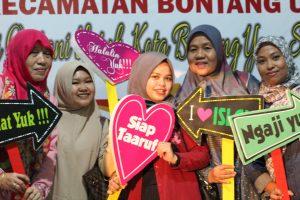 Apalagi, kata dia, di sudut arena, panitia memang menyiapkan booth untuk berswafoto. Pengunjung pun tidak menyia-nyiakan fasilitas tersebut. Mereka sisa memegang tongkat yang bertuliskan aneka pesan singkat bernuansa Alquran. Di antara, ada tulisan Generasi Qur’ani, Bontang JAGO, Generasi Rabbani, Ngaji yuk, Siap Taaruf, Calon ustadz/ustadzah dan Penegak sunnah.