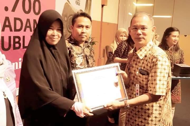 Penerimaan secara simbolis piagam penghargaan dan plakat diterima langsung oleh Kepala Seksi Prasarana Sarana Pelayanan Umum, mewakili Camat Bontang Selatan, Nana Fitriana, SE. yang diserahkan langsung, Kepala Dinas Komunikasi dan Informatika Kaltim, Diddy Rusdiansyah Ad., S.E., M.M didampingi Ketua KI Kaltim
